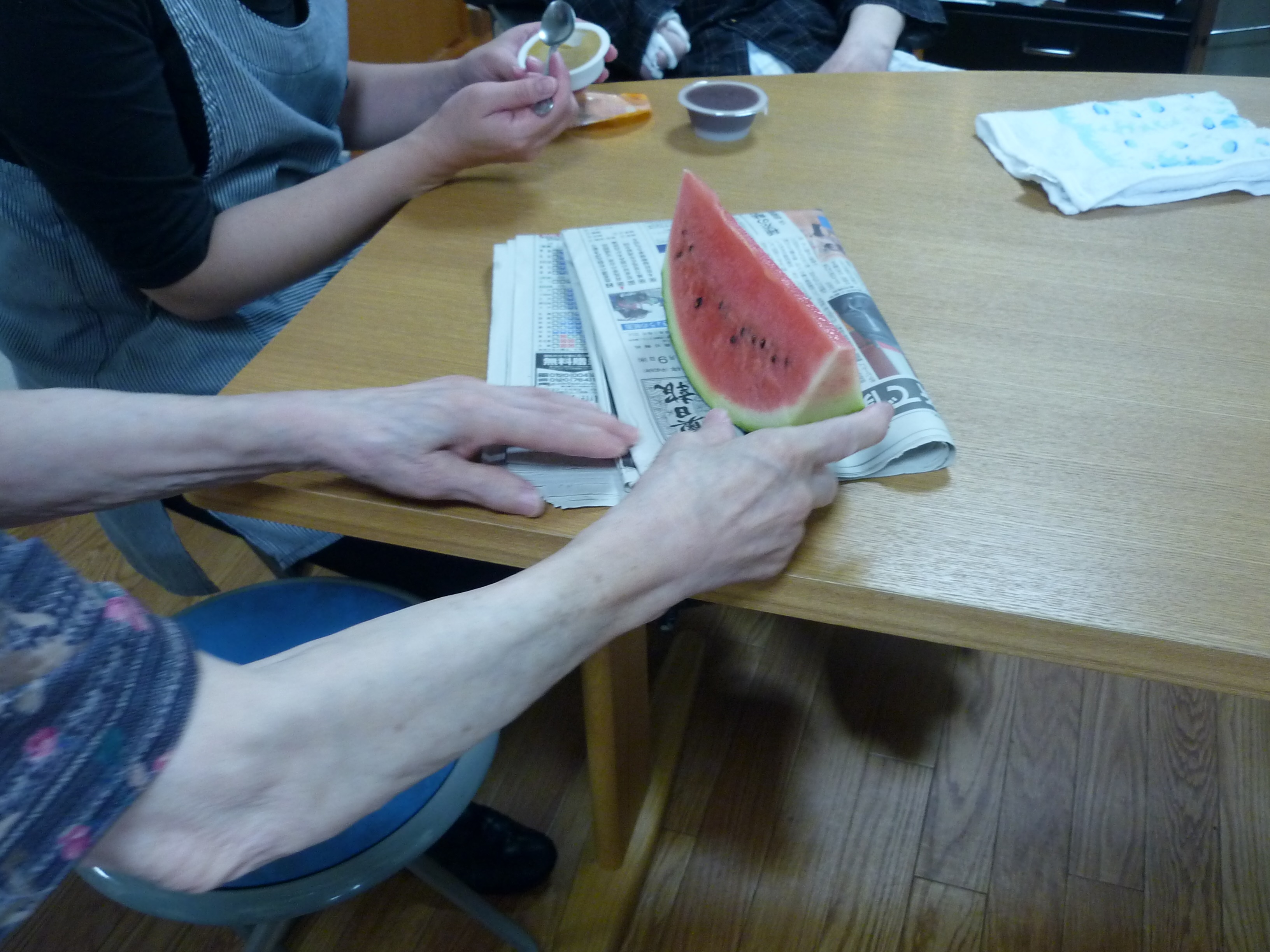 さっそくおやつの時間、お部屋で過ごされていた利用者様にも声を掛け、
